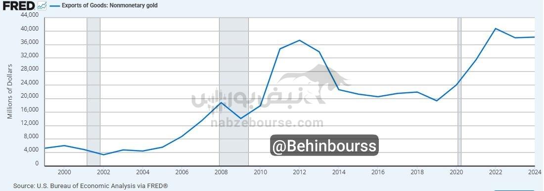 به گزارش نبض بورس، در سال ۲۰۲۲، صادرات طلای آمریکا به رکورد ۴۰ میلیارد دلار رسید، و بیشتر این طلا از سوئیس به چین منتقل شد. این روند نشان میدهد که چین به جای دلار، ترجیح میدهد در ازای کالاهایش طلا دریافت کند.
