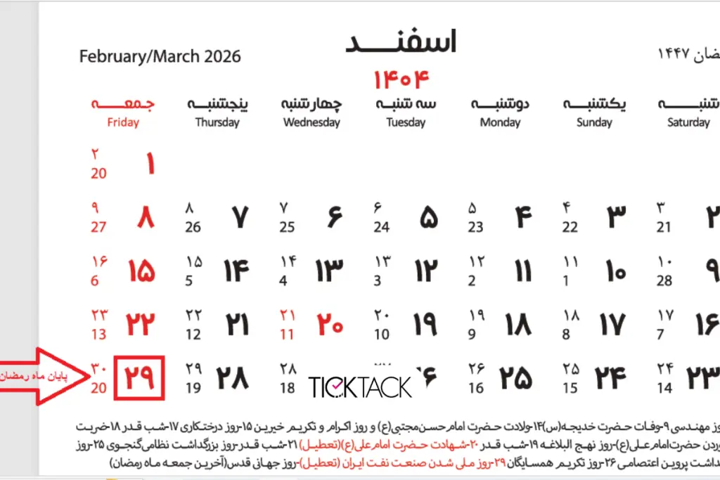 • پایان رمضان: جمعه ۲۹ اسفند ۱۴۰۴