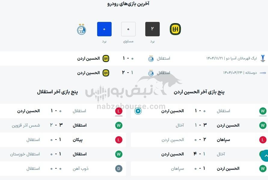 به گزارش نبض بورس، امروز، دو تیم فوتبال ، استقلال و الحسین اردن ، در مرحله برگشت حذفی لیگ قهرمانان آسیا ۲ به مصاف هم می‌روند.