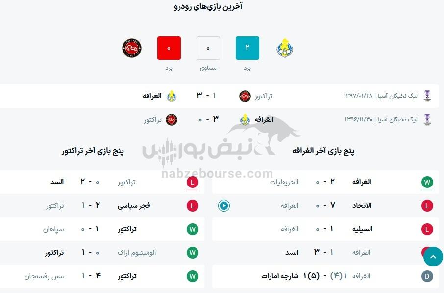 نتایج قبلی تراکتور و الغرافه قطر