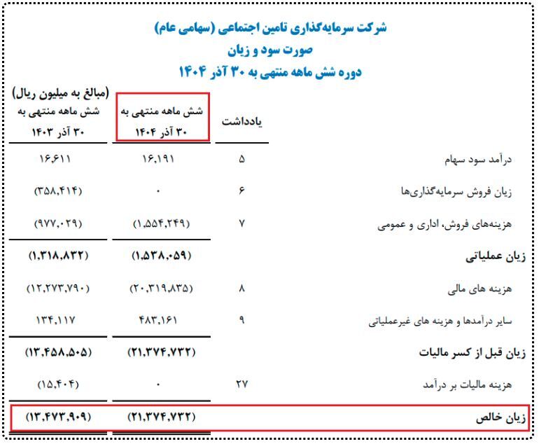بررسی آمار رسمی منتشرشده در سامانه کدال نشان می‌دهد شستا در شش ماهه منتهی به پایان آذرماه، با زیان خالص بیش از ۲ هزار و ۱۰۰ میلیارد تومان مواجه شده؛ رقمی که نسبت به مدت مشابه سال قبل ۵۹ درصد افزایش داشته و از تعمیق بحران درآمدی در این مجموعه اقتصادی خبر می‌دهد.