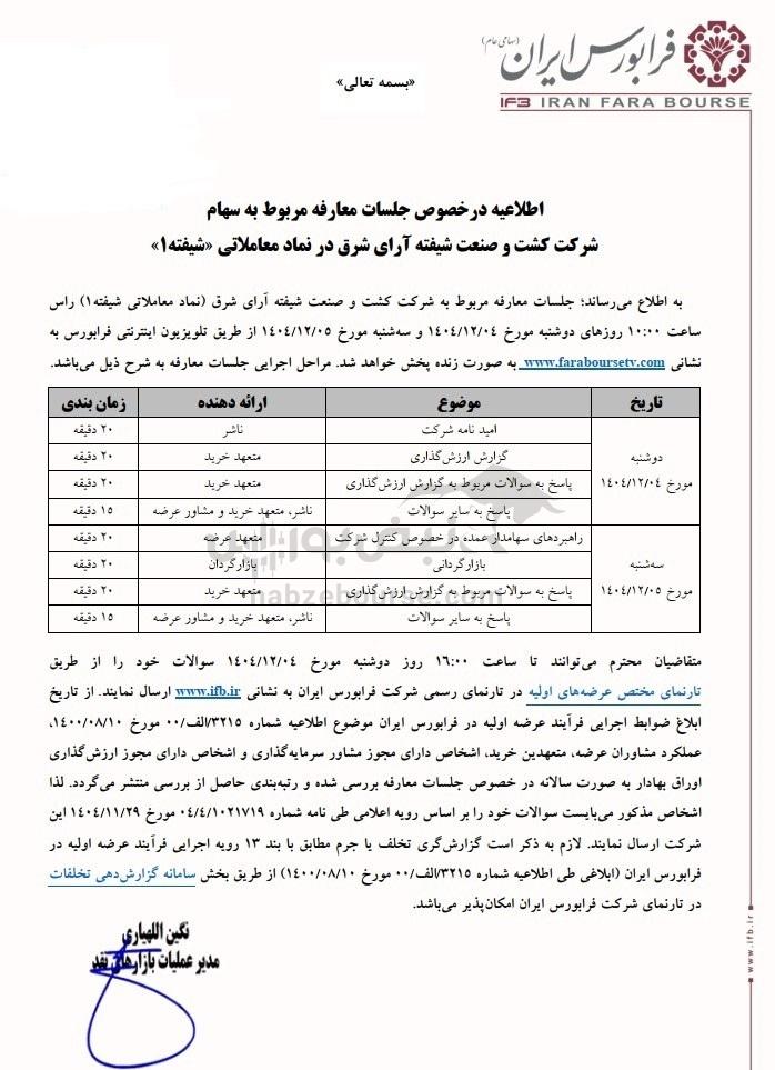• نماد معاملاتی عرضه اولیه: شیفته ۱