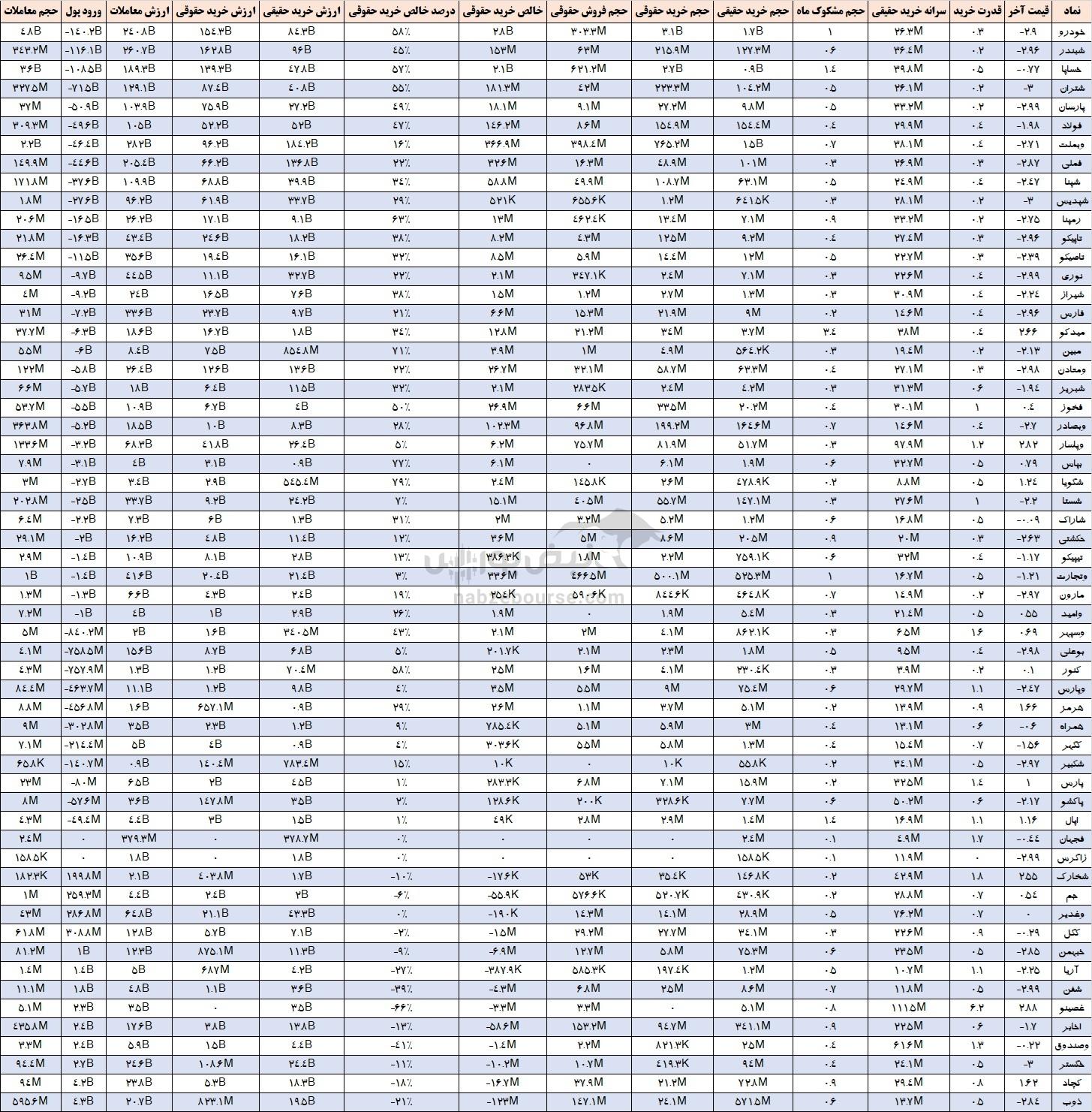 جدول کامل معاملات 60 نماد بزرگ و شاخص ساز (روز چهارشنبه)