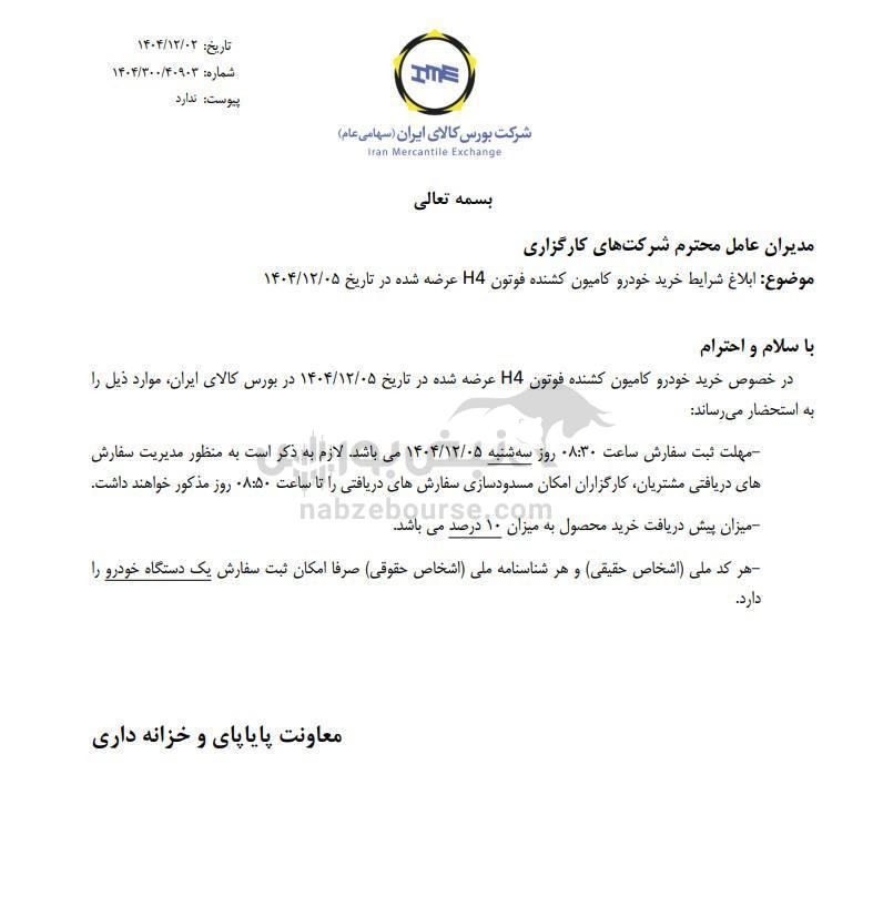 به گزارش نبض بورس، ابلاغ شرایط خرید کامیون کشنده فوتون در بورس کالا