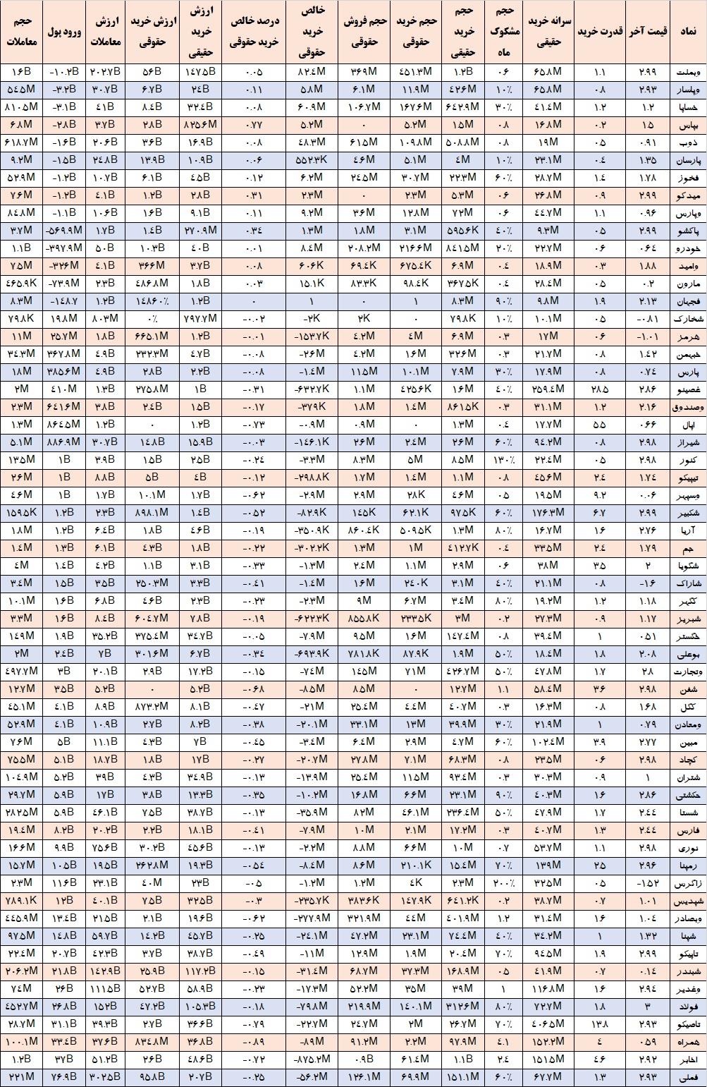 گسترش نفت و گاز پارسیان (تاپیکو) و سرمایهگذاری غدیر (وغدیر) نیز ورود نقدینگی قابل توجهی داشتند.
