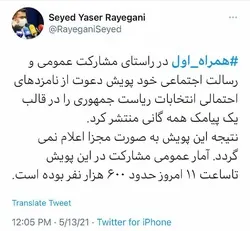 توئیت مدیرکل ارتباطات همراه اول در خصوص پویش دعوت از نامزدهای احتمالی انتخابات ریاستجمهوری