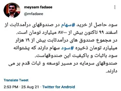 توئیت | ۸۷۰۰ میلیارد تومان سود حاصل از خرید سهام در صندوقهای درآمد ثابت