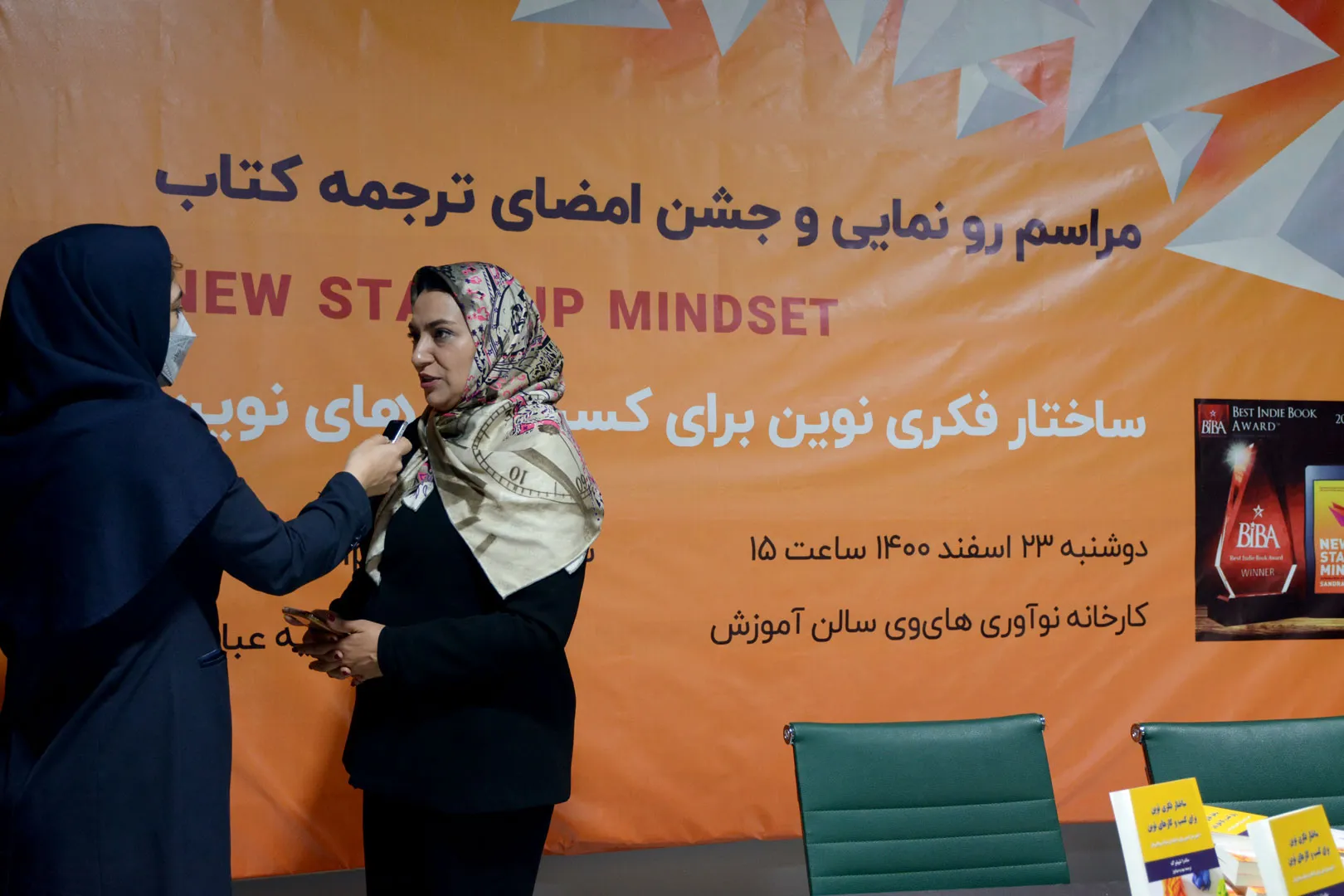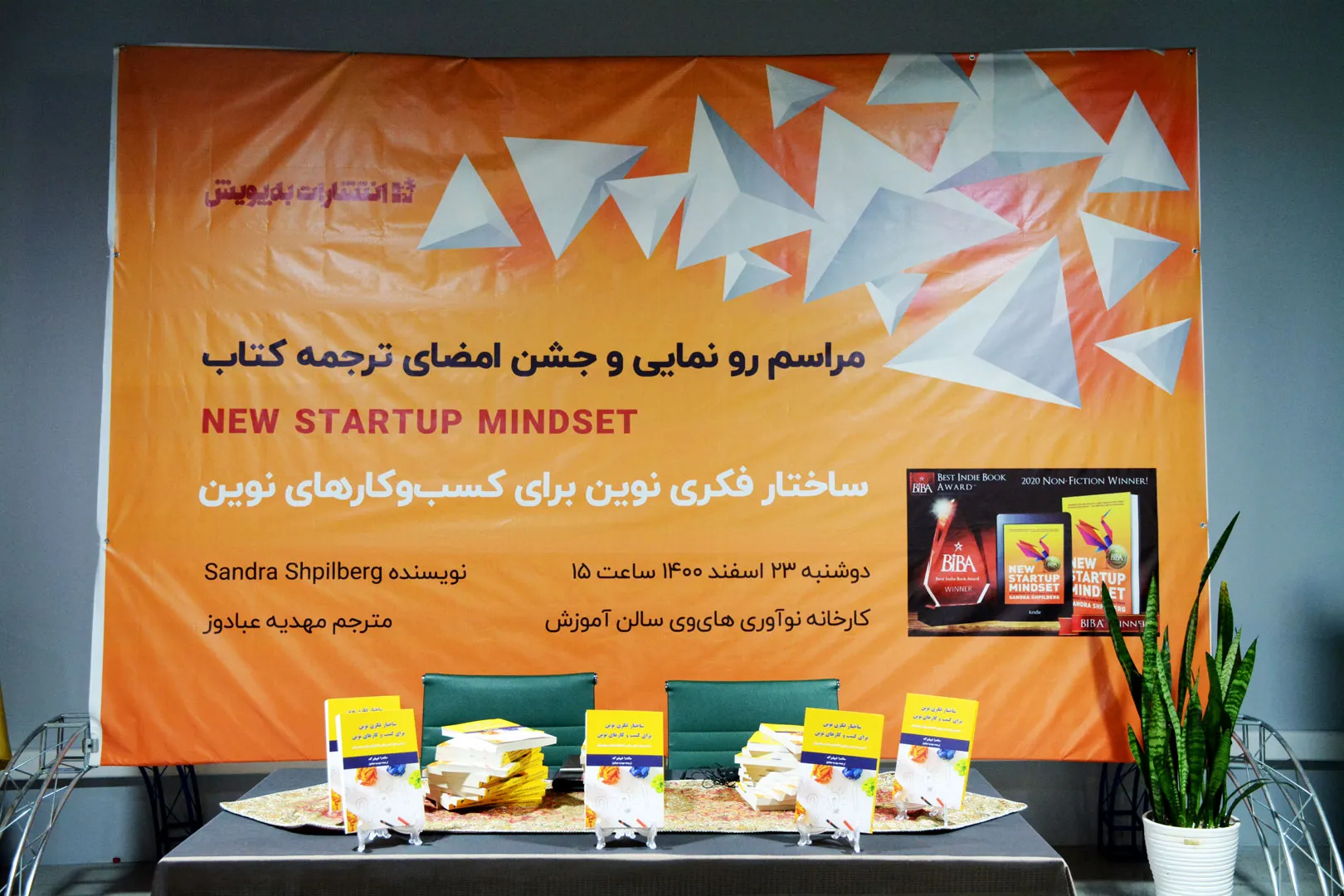 در ادامه مراسم ساندراشپیلبرگ نویسنده کتاب ساختار فکری نوین برای کسب و کارهای نوین در ارتباط تصویری با برگزار کنندگان این مراسم ضمن ابراز خوشحالی از ترجمه کتاب خود، گفت: دلیل اینکه من با ترجمه این کتاب موافقت کردم این بود که به بهبود هر چه بیشتر دسترسی به منابع کارآفرینی و دادن انگیزه به کارآفرینان برای رسیدن رویا های آنها کمک کند.