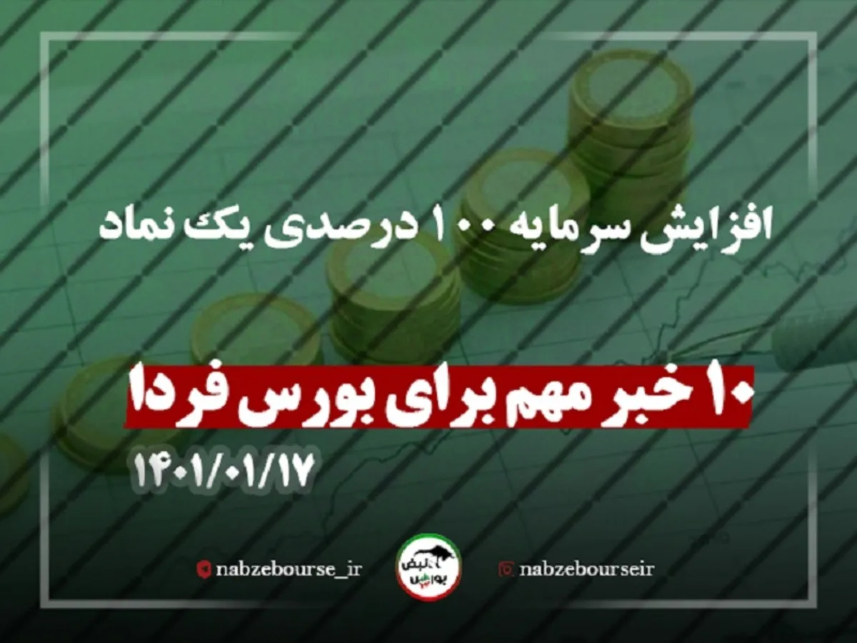 بورس فردا در حالی آغاز به کار خواهد کرد که ده خبر مهم می‌توانند بر روی روند آن تاثیرگذار باشند. یکی از این خبرها، افزایش سرمایه ۱۰۰ درصدی یک نماد بورسی بود.