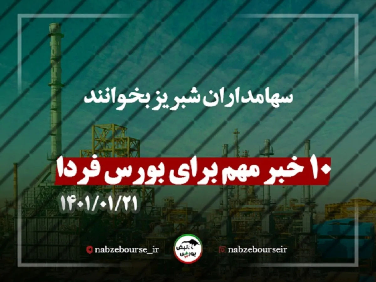 بورس فردا یکشنبه ۲۱ فروردین ۱۴۰۱ در حالی کار خود را آغاز خواهد کرد که احتمالا این ده خبر می‌توانند بر روی روند آن تاثیرگذار باشند. پیشنهاد می‌شود قبل از معاملات فردا این ده خبر را ببینید و بخوانید.