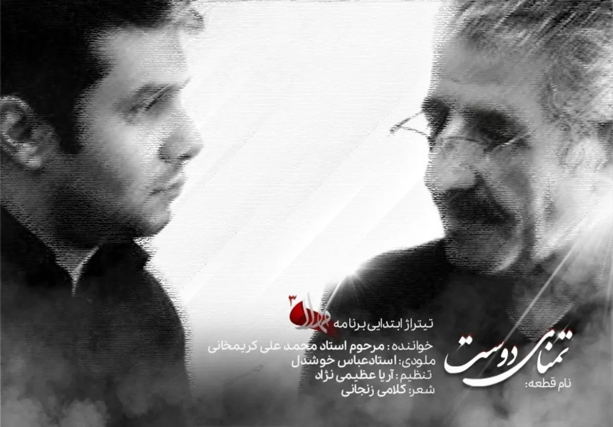 قطعه «تمنای دوست» با شعری از ولی الله کلامی زنجانی و ملودی عباس خوشدل تهیه شده است.
