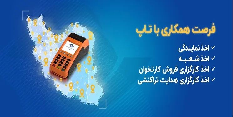 شـرکت تجـارت الکترونیک پارسیـان (تاپ) در راستای گسترش فعالیتهای خود در سراسر کشور، نمایندگی فعال مـیپذیرد.
