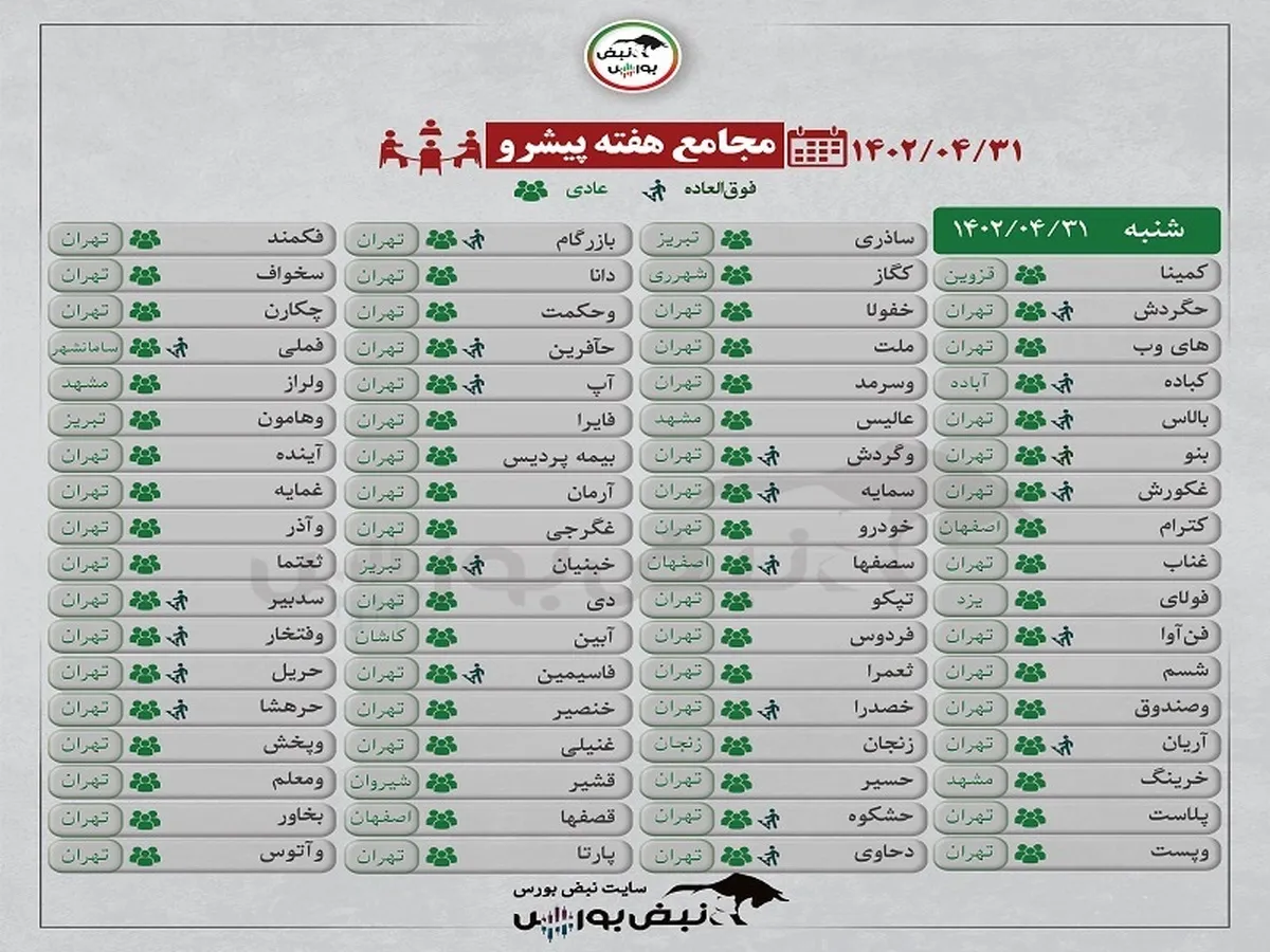 هفته آینده کدام نمادها مجمع برگزار میکنند؟ | مجمع ۷۷ نماد روز شنبه برگزار میشود