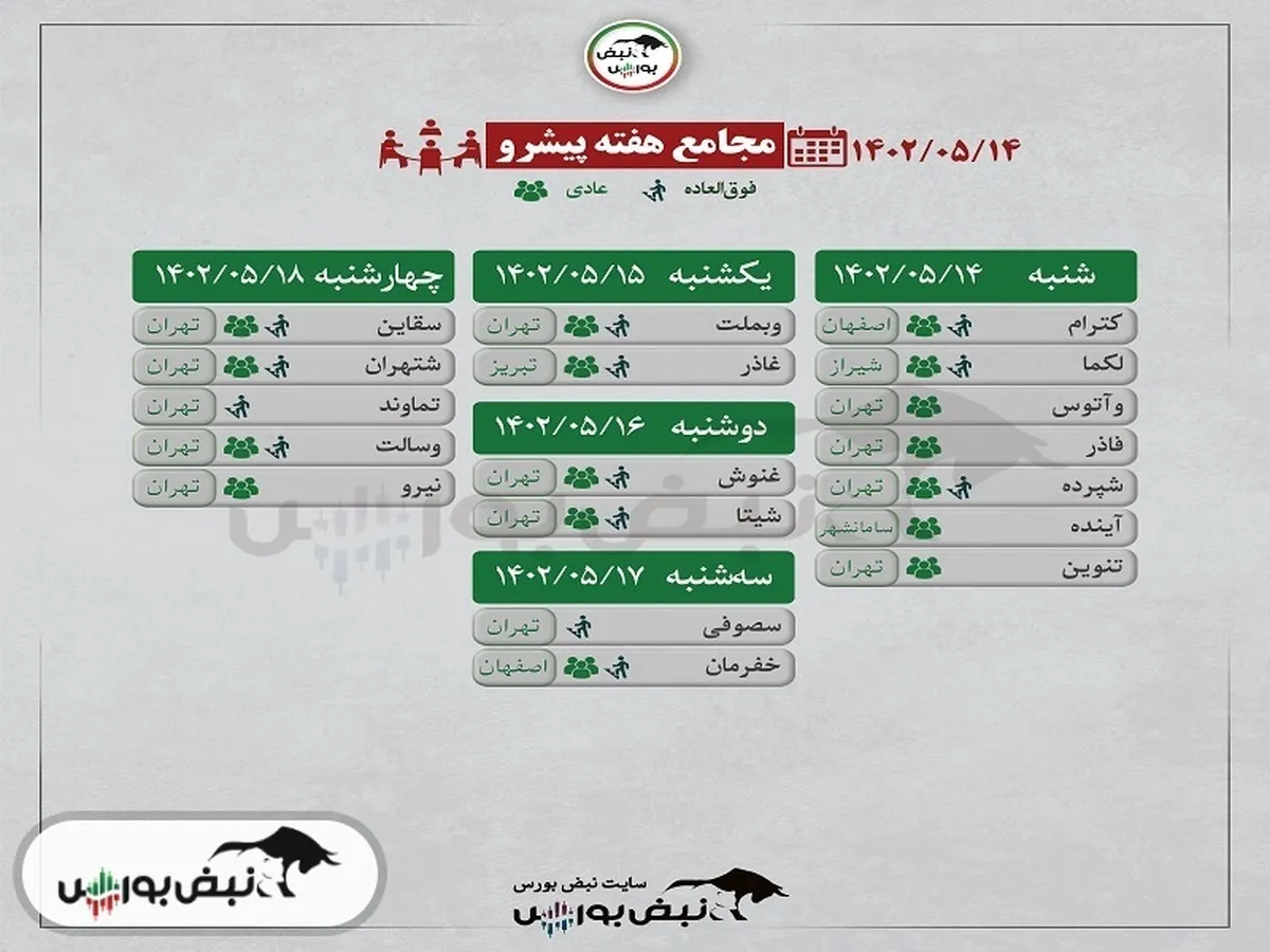 هفته آینده کدام نمادها مجمع برگزار می کنند؟| برگزاری مجمع توسط نماد بانکی