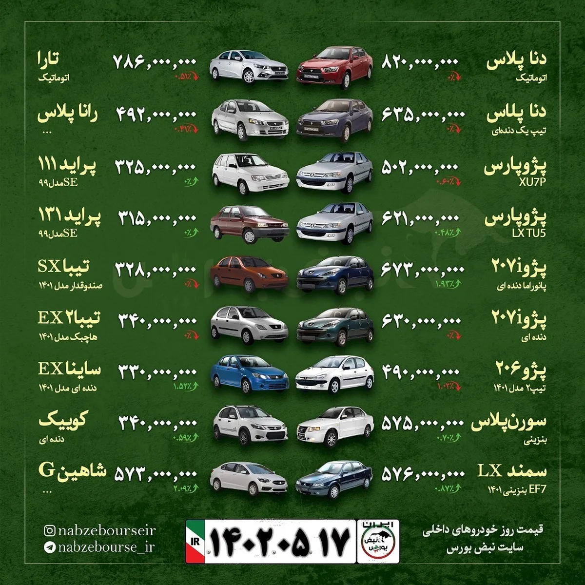 قیمت خودرو امروز ۱۷ مرداد ۱۴۰۲ + عکس