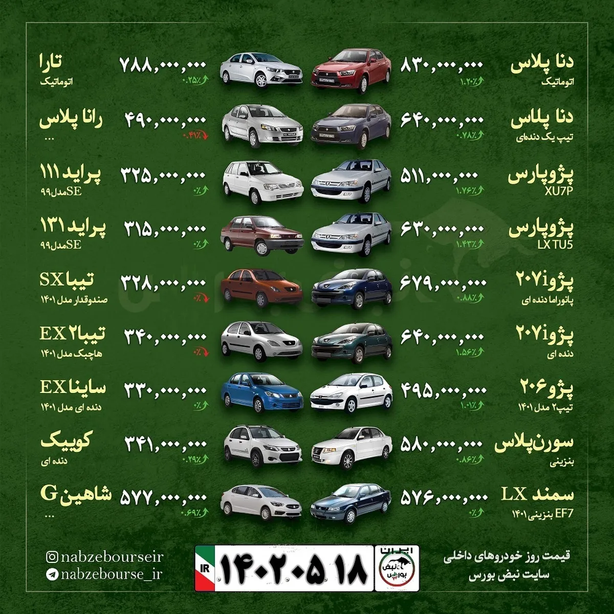 قیمت خودرو امروز ۱۸ مرداد ۱۴۰۲ + عکس