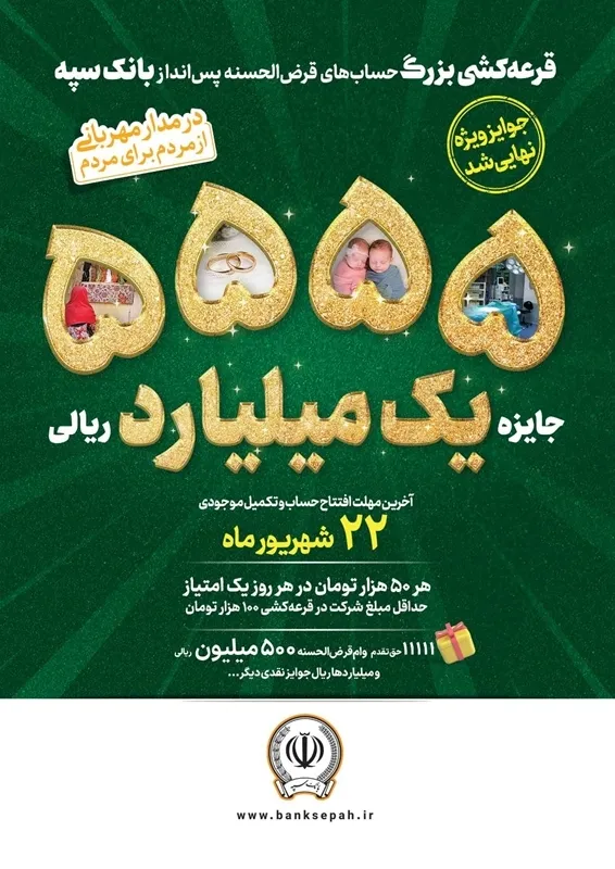 افزایش جوایز جشنواره بزرگ قرعهکشی حسابهای قرضالحسنه پسانداز بانک سپه