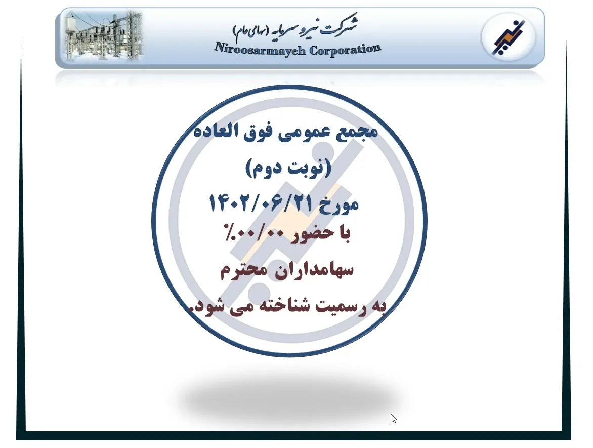 فیلم مجمع افزایش سرمایه نیرو ۱۴۰۲ (شرکت نیرو سرمایه)