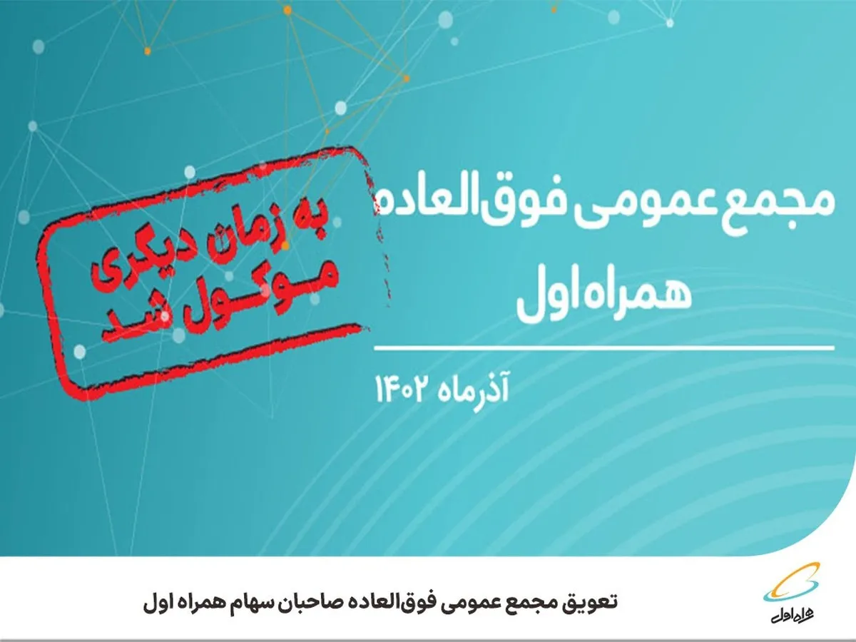 مجمع عمومی فوقالعاده صاحبان سهام شرکت ارتباطات سیار ایران (همراه اول) که قرار بود ۲۱ آذرماه برگزار شود به تعویق افتاد.