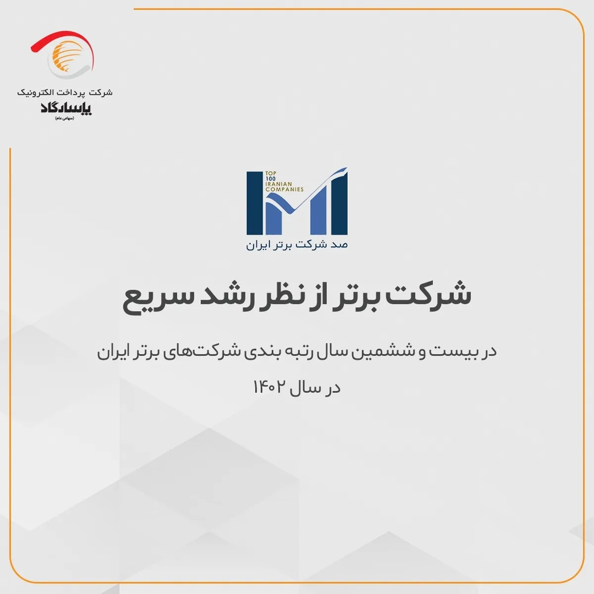 پرداخت الکترونیک پاسارگاد، شرکت برتر از نظر رشد سریع