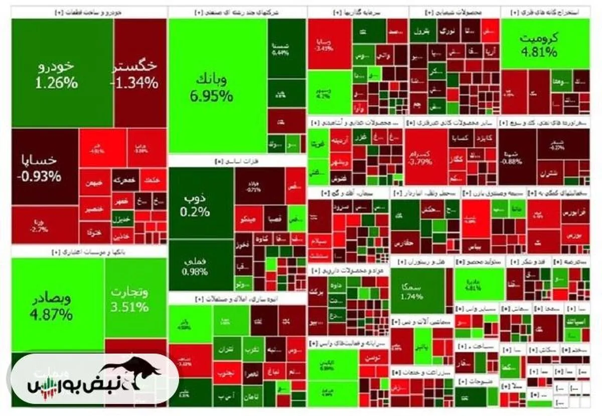 نقشه بازار بورس ـ سهشنبه ۲۲ اسفند ۱۴۰۲میدکو بیشترین تاثیر منفی را بر شاخص کل داشت اما فملی، وبملت و خودرو به عنوان نمادهای تاثیرگذار، مثبت شدند. نمادهای پرتراکنش نیز به ترتیب خودرو، خگستر، وبصادر و وبملت بودند.