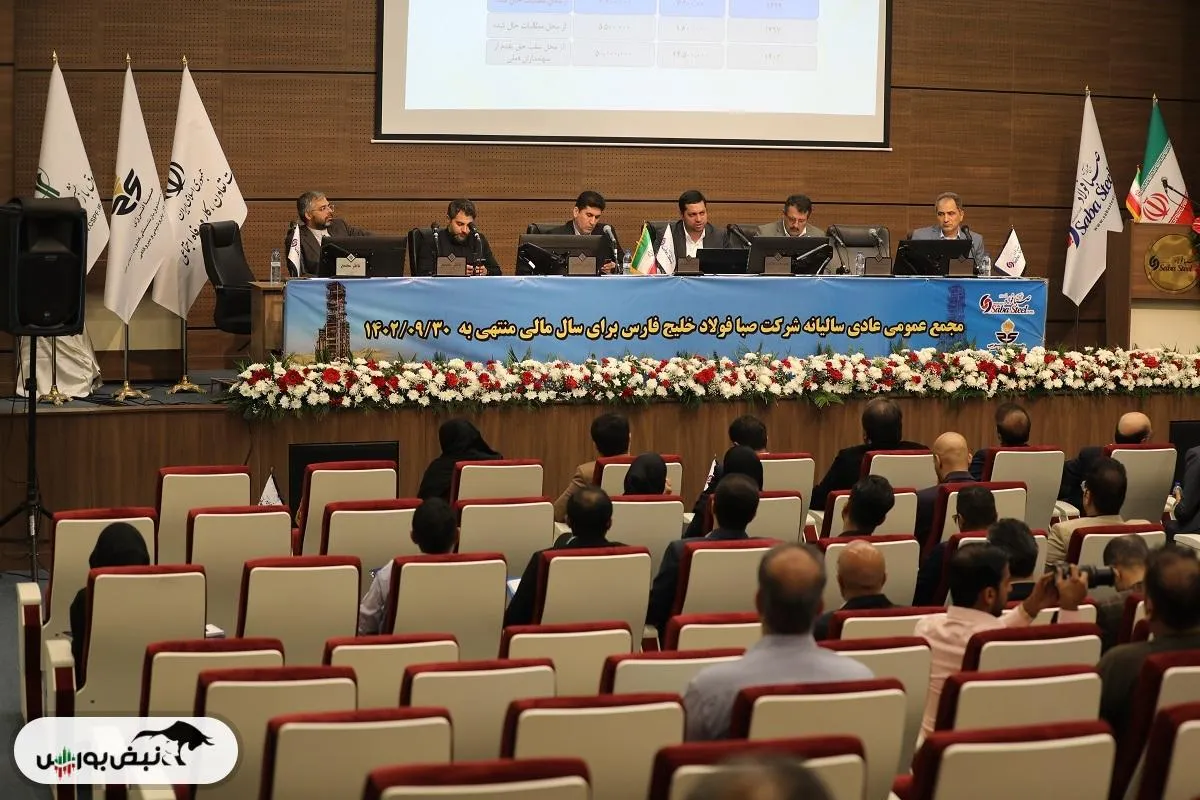 مجمع عمومی عادی سالیانه شرکت صبا فولاد خلیج فارس صبح روز ۲۹ فروردين ۱۴۰۳ با حضور 79 درصدی سهامداران و 206 نفر از سهامداران برگزار شد.