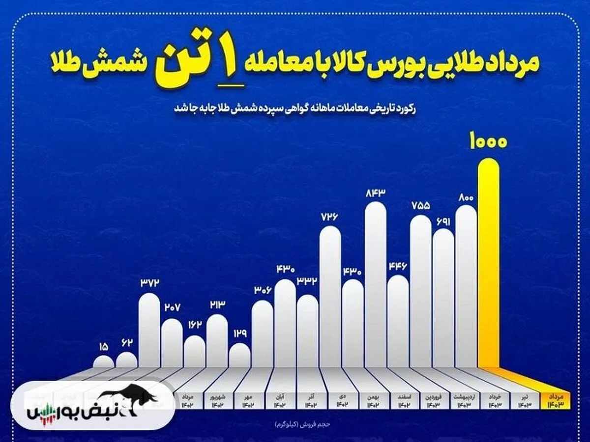 به این ترتیب معامله نزدیک به ۳۰ کیلوگرم شمش طلا به ارزش هزار و ۴۴۲ میلیارد ریال در روز چهارشنبه ۳۱ مرداد ماه، حجم معاملات مرداد ماه به یک هزار و ۸ کیلوگرم افزایش یافت. پیش از این، بیشترین رکورد در حجم معاملات ماهانه مربوط به اسفند ۱۴۰۲ با معامله ۸۴۳ کیلوگرم شمش بود.