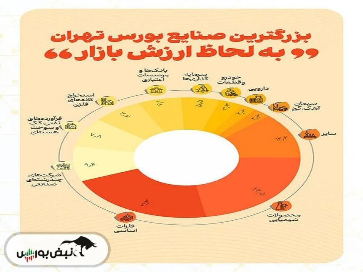 بر این اساس، دو صنعت «محصولات شیمیایی و فلزات اساسی» به ترتیب ۲۲.۵ و ۲۱.۳ درصد از کل ارزش بازار سهام بورس تهران را به خود اختصاص داده‌ و در صدر جدول گروه‌های صنعتی بزرگ بورس ایستاده‌اند.