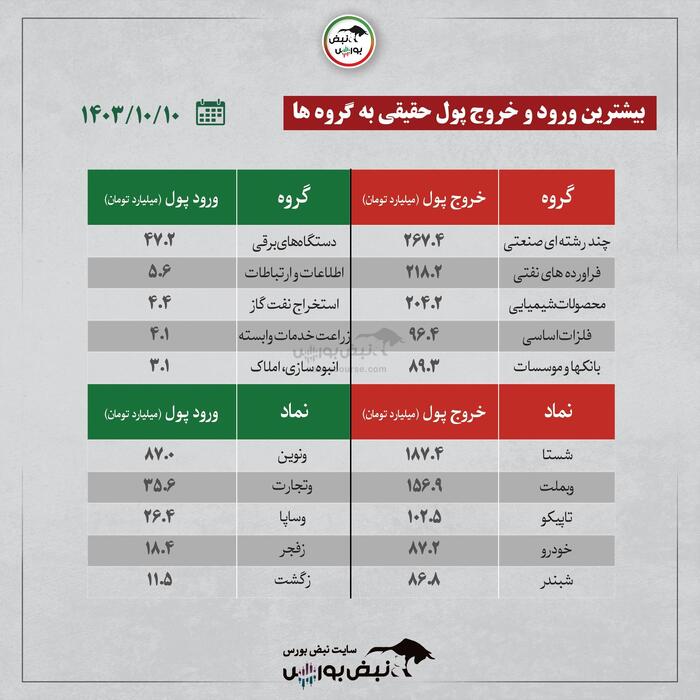 بیشترین ورود و خروج پول حقیقی به نمادها و گروه ها