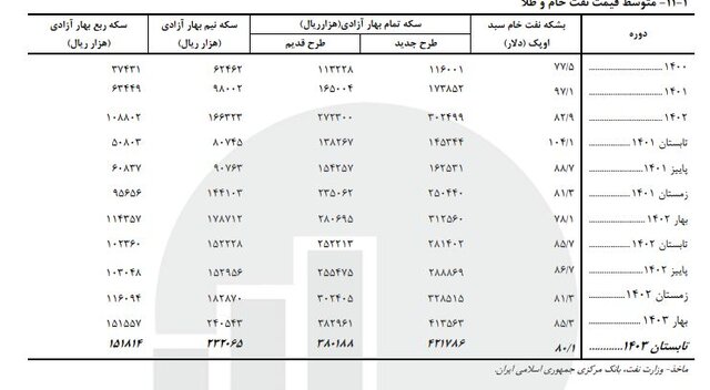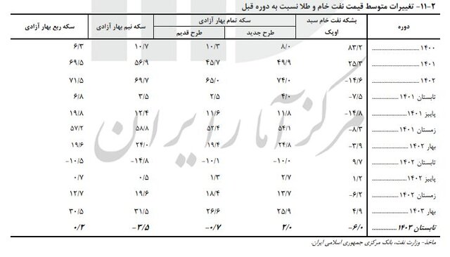 به گزارش نبض بورس، مرکز آمار گزارش فصلی مربوز به تابستان ۱۴۰۳ را منتشر کرده که بر اساس آن، متوسط قیمت هر بشکه نفت خام سبد اوپک ۱.۸۰ دلار بوده است که نسبت به بهار ۱۴۰۳ معادل ۰.۶ درصد کاهش داشته است.