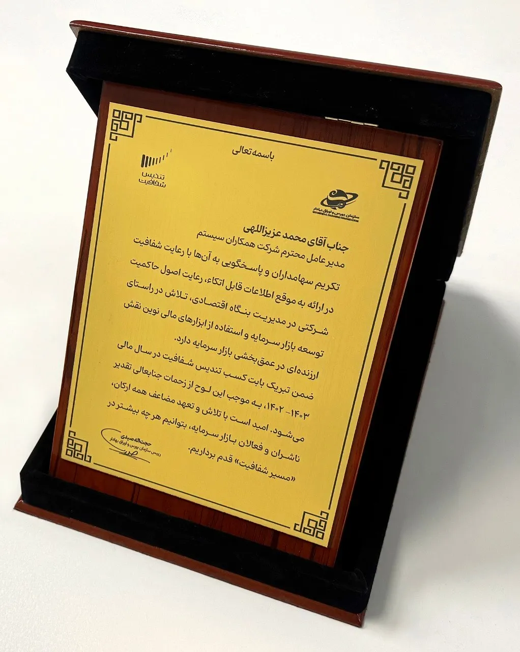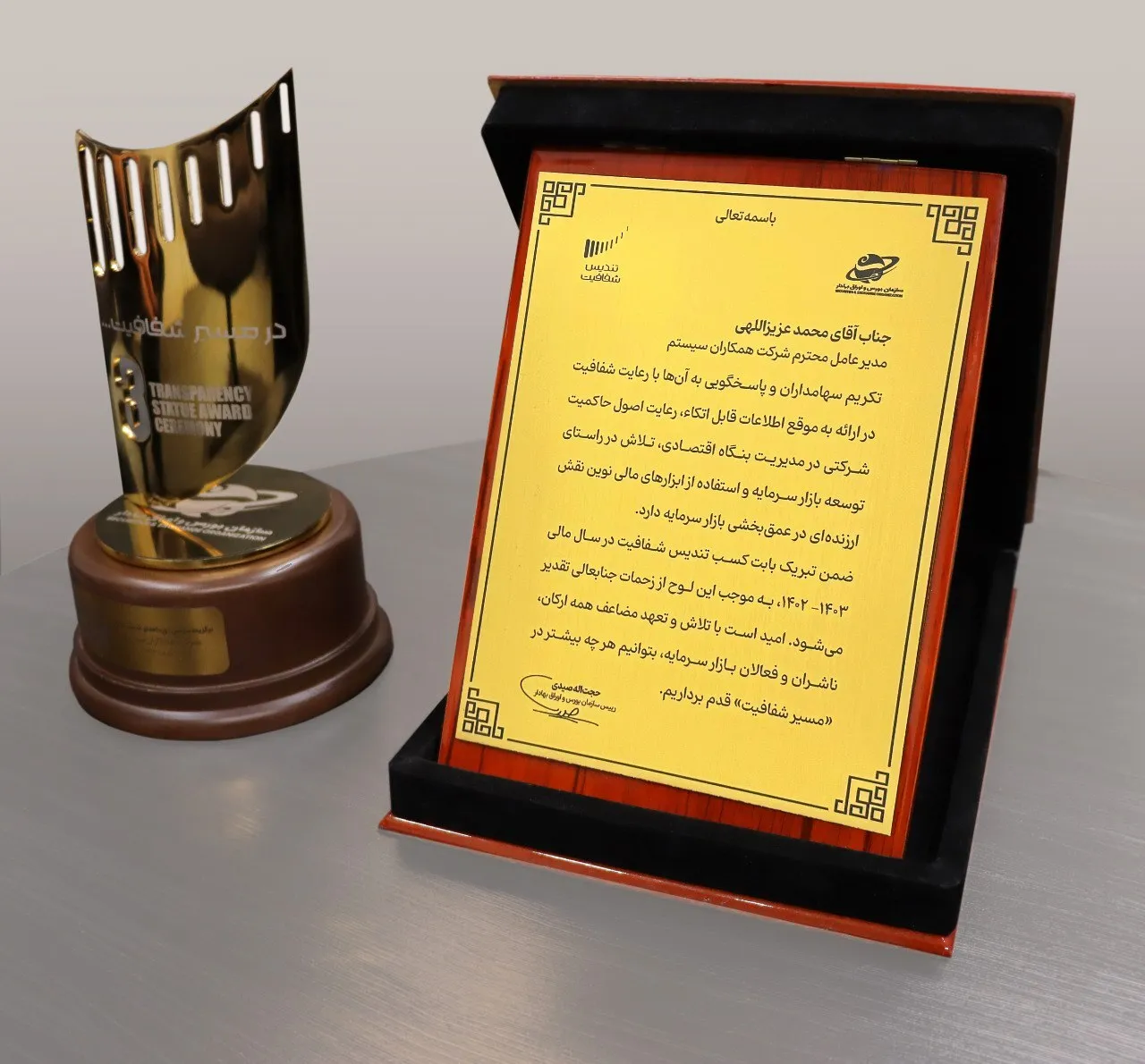 همکاران سیستم موفق به کسب تندیس شفافیت در سومین دوره آیین اهدای تندیس شفافیت بازار سرمایه شد.