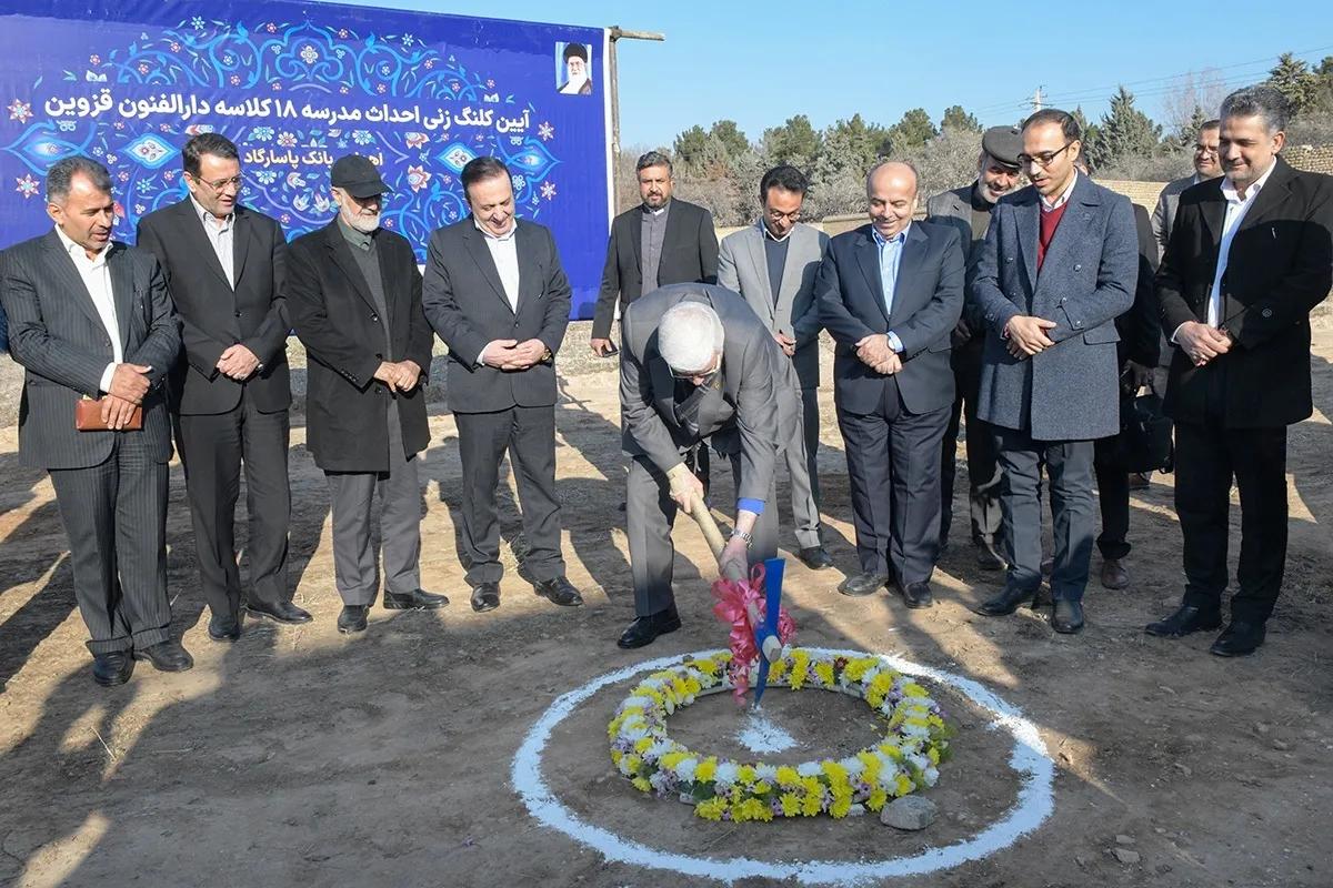 بانک پاسارگاد کلنگ احداث مجموعه آموزشی دارالفنون استان قزوین را بر زمین زد