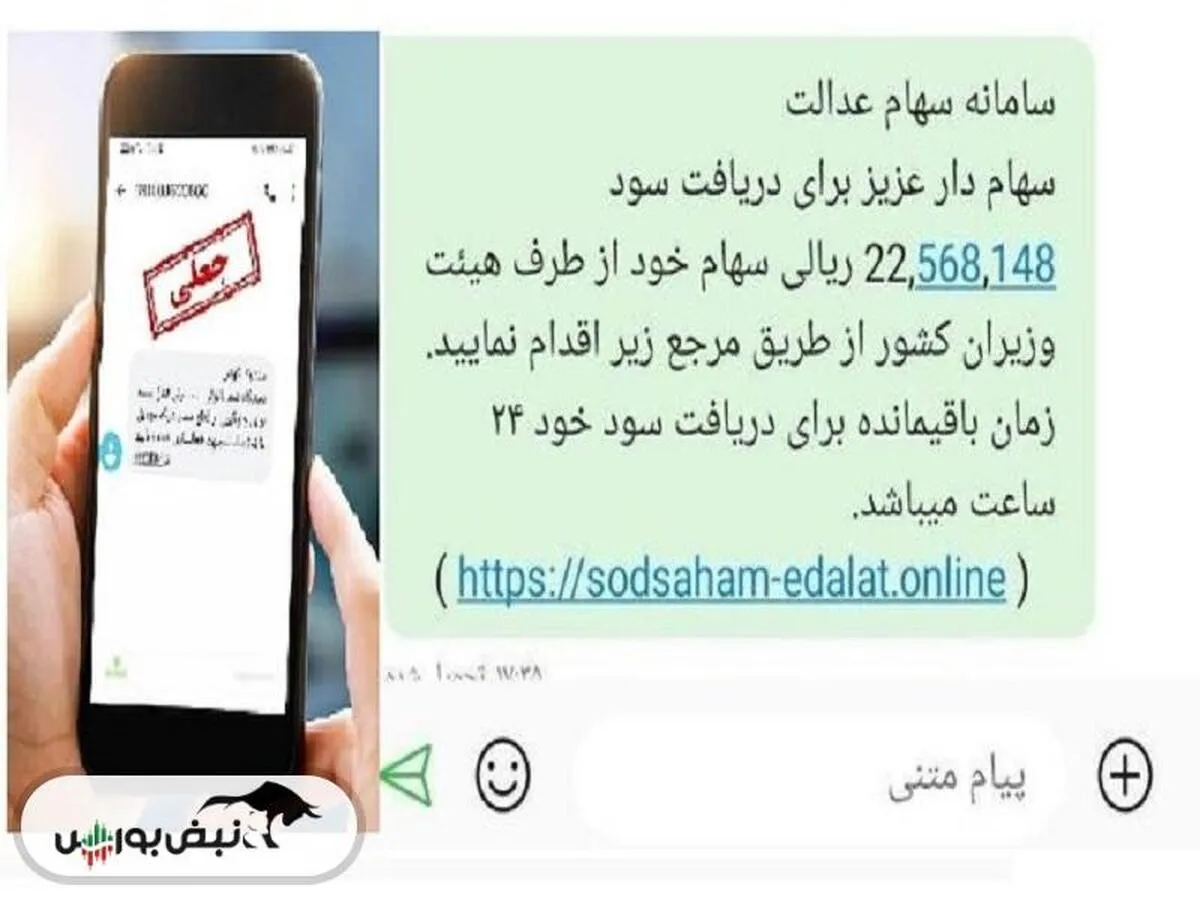 یک مقام پلیس فتا نسبت به شگرد ارسال پیامک‌های مشکوک با مضمون سود سهام عدالت که هر از گاهی توسط کلاهبرداران ارسال می‌شود هشدار داد و اعلام کرد که سودجویان با ارسال بدافزار، اطلاعات کارت بانکی متقاضیان را برای خالی کردن حساب‌ها به سرقت می‌برند.