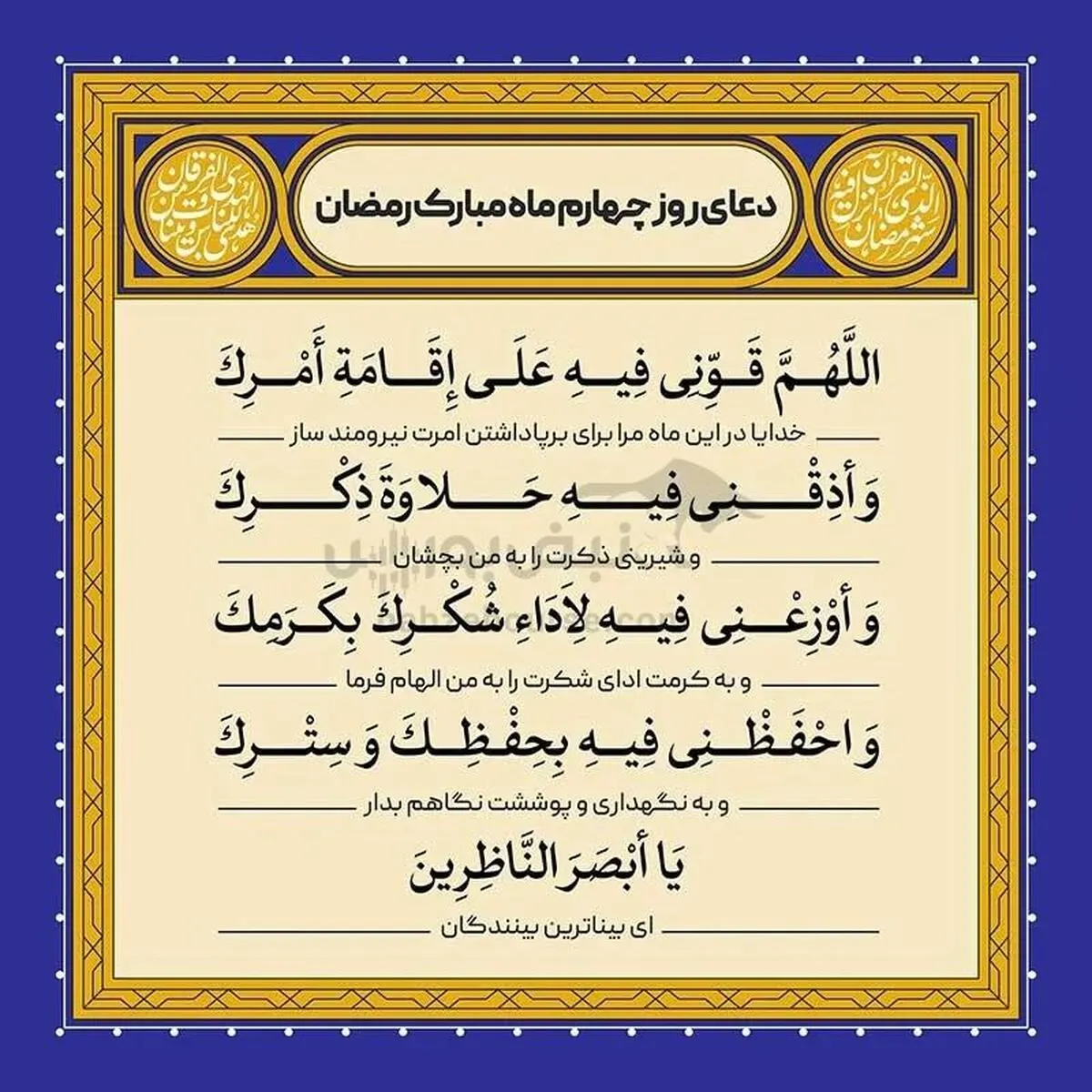 دعای روز چهارم ماه مبارک رمضان + تصویر