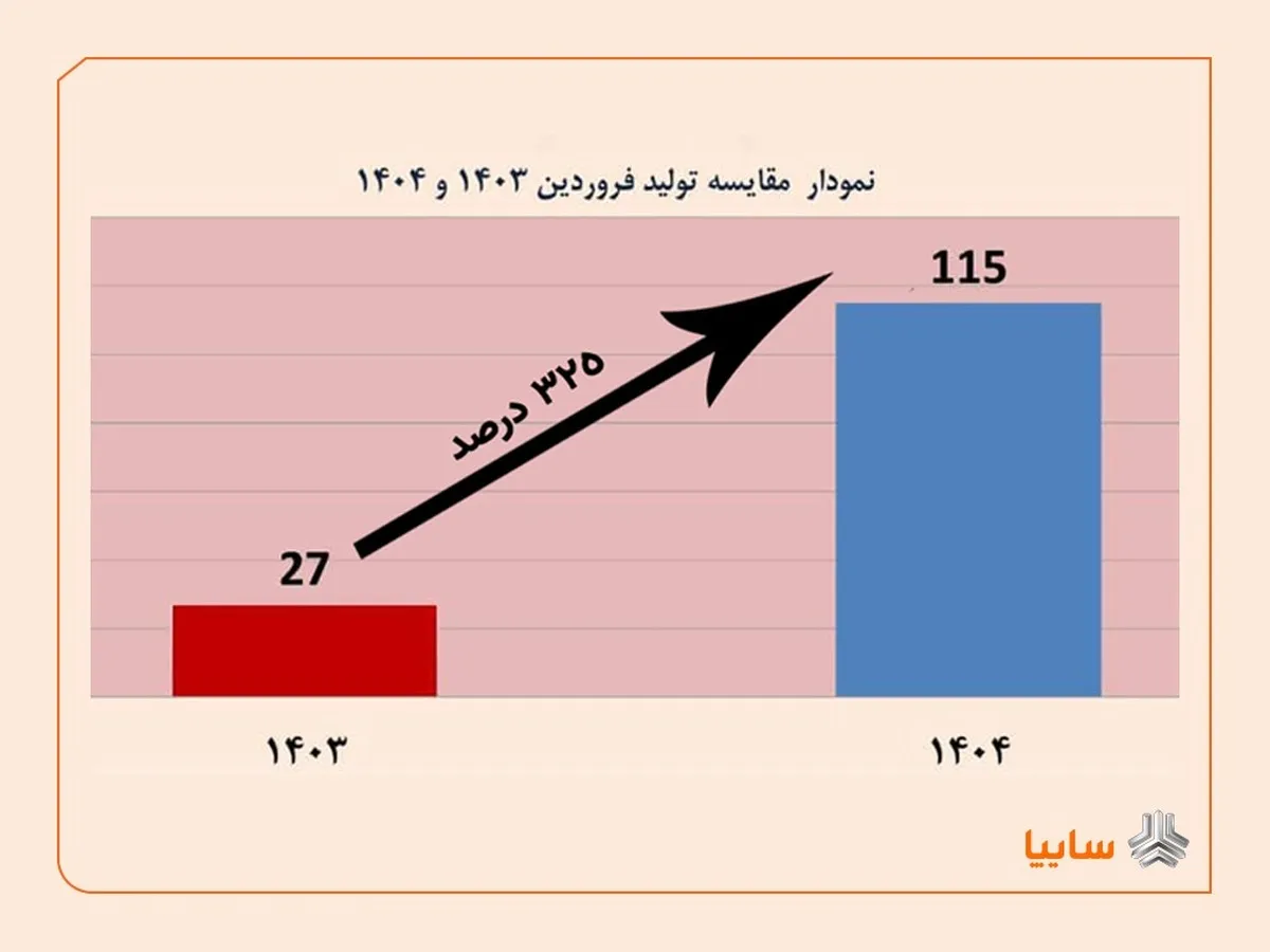 رشد تولید 325 درصدی محصولات در فروردین ماه 1404